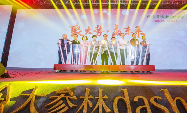 壹号娱乐药业集团董事长刘景萍女士与大参林医药集团董事长柯云峰先生、中国医药商业协会执行会长付明仲女士等嘉宾共同开启了“聚大势•赢未来"大参林工商合作峰会的大幕。