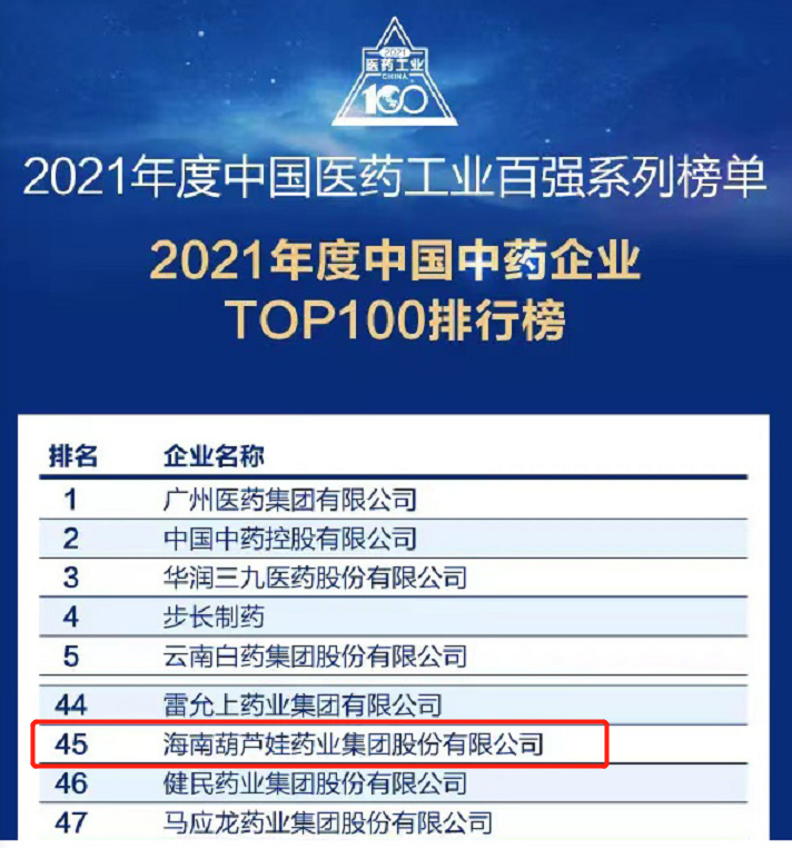 喜讯!壹号娱乐药业连续3年荣登“中国中药企业TOP100排行榜”