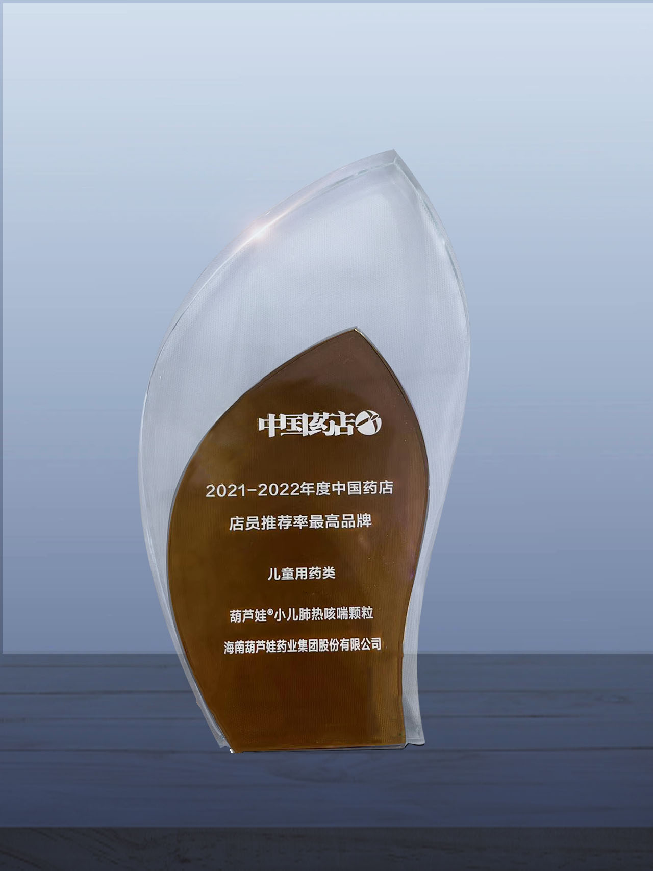 近日,由《中国药店》杂志社举办的“2022~2023年度中国药店发展报告暨中国药店价值榜发布会”在青岛举行,会上发布了“2021-2022年度中国药店店员推荐率最高品牌”奖,壹号娱乐药业两大明星产品壹号娱乐牌小儿肺热咳喘颗粒(4g)、壹号娱乐牌肠炎宁颗粒(2g)双双上榜。