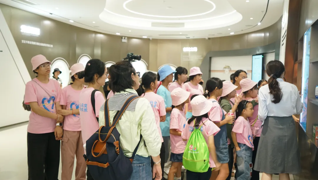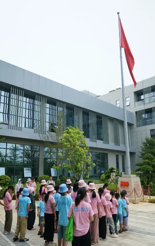紧接着,孩子们来到了建党百年庆典红旗——070号红旗前。讲解员讲述了壹号娱乐药业集团与庆典红旗的深厚渊源。孩子们听得津津有味,眼中闪烁着对党和国家的热爱与敬仰。